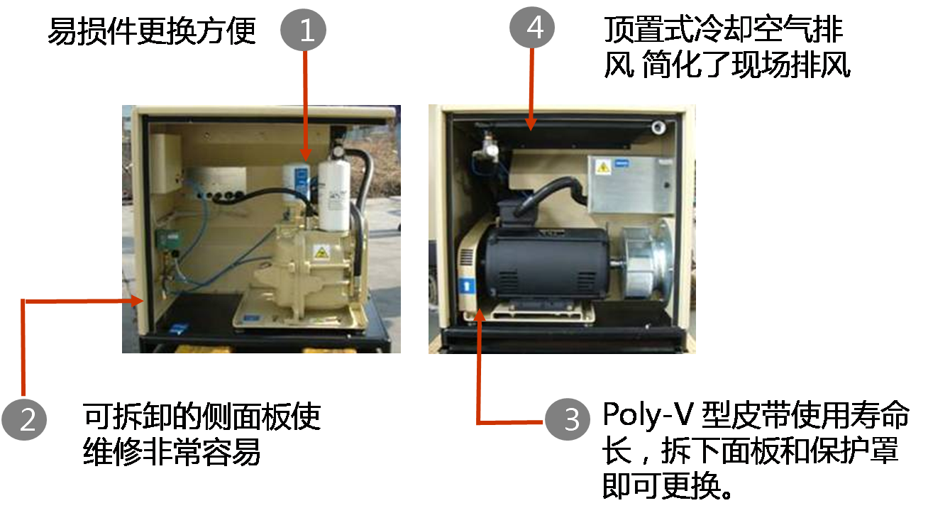 — 将易受高(gāo)溫影響而損壞(huai)的電氣元件及(jí)油分離和過濾(lǜ)模塊置于冷室(shi)中,提高了機組(zu)的使用壽命
